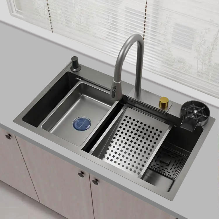 Bemutatjuk munkaállomással ellátott konyhai mosogatónkat – a modern konyhák forradalmi kiegészítője, amely zökkenőmentesen ötvözi a funkcionalitást és a stílust. Az MNBAM innovatív mosogatódizájnja a konyhai mosogató hagyományos koncepcióját sokrétű munkaállomássá alakítja át, és még jobb kulináris élményt kínál.